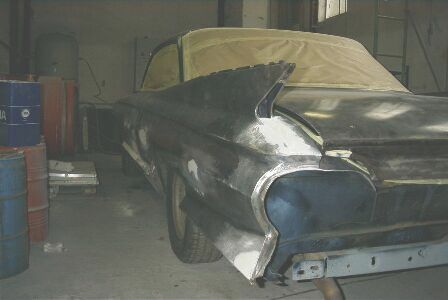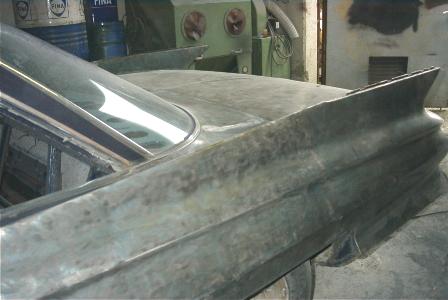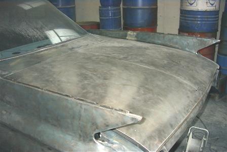| Nachdem dann der ganze Chromkram abgebaut war, ging es an die Aussenhaut | |||||||