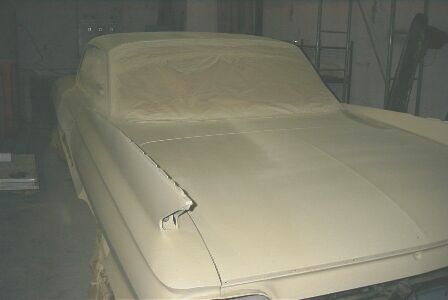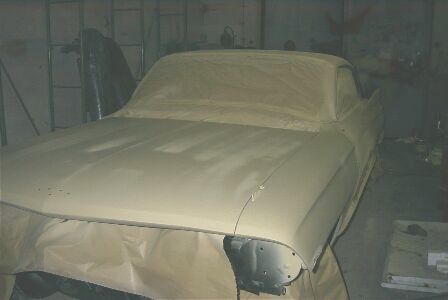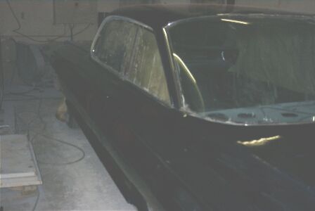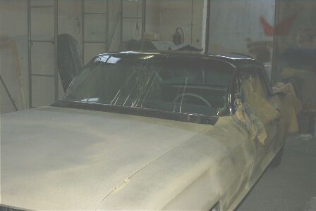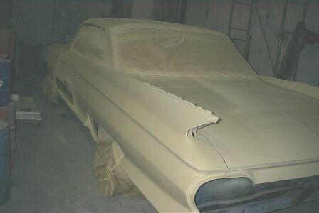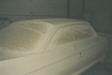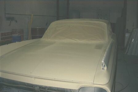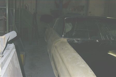 So heute ist der 28.08.2001. Es ist fast vollbracht. Aufgrund der grossen Flächen wurde der Wagen stückweise lackiert. Zuerst das Dach, dann die Hauben, und zum Schluss die Seitenteile. Das rechte Seitenteil muss noch lackiert werden, dann geht es wieder ans Zusammenbauen.