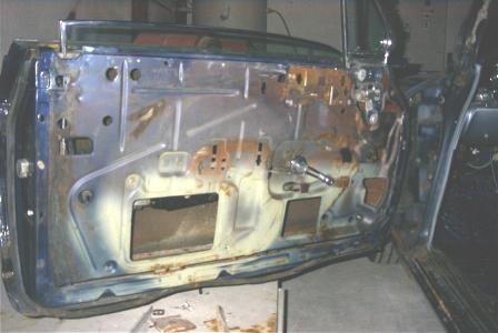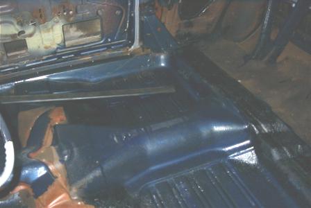 | Im April 2001 fing es also an. Erst wurde das gesamte Interieur ausgeräumt. Nachdem der Teppich im Innenraum verwschwunden war, sah es gar nicht übel aus was Rost betrifft. Nach entrosten der Bodengruppe, wurde alles mit einer speziellen Rostschützenden Farbe ausgestrichen. Da man davon nachher nichts mehr sieht, kann das mit Pinsel geschehen. Soll ja nur Rost verhindern. Das Ergebnis kann sich aber trotzdem sehen lassen. | |||||||
